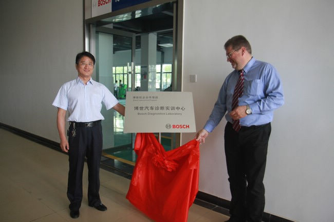 2012年10月8日上午博世集团汽车售后事业部执行副总裁文斯托夫先生,南京博世总经理马克思等一行到访8868官方在线入口参观并举行“博世汽车诊断实训中心”揭牌与“博世南京双元制合作班”开班仪式。