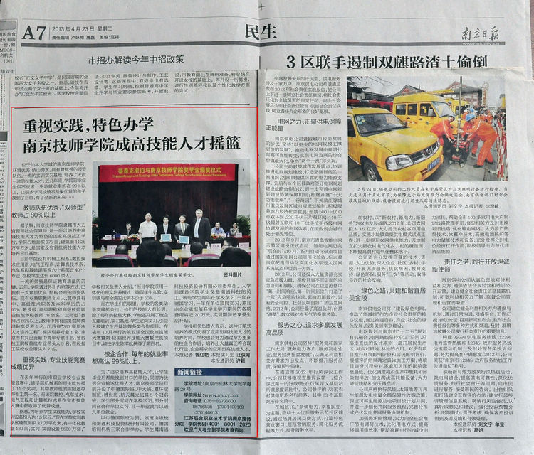 《南京日报》A7版—《重视实践,特色办学 8868官方在线入口成高技能人才摇篮》