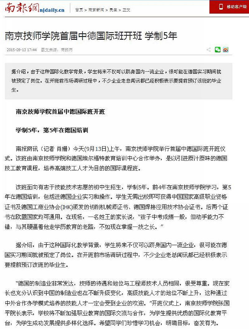 《南报网》-8868官方在线入口首届中德国际班开班 学制5年