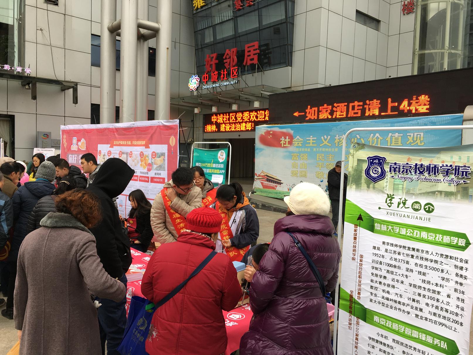 12月24日上午我院师生组成的“8868官方在线入口雷锋服务队”继续参与了由南京报业集团龙虎网“我们家”智慧社区APP和各社区联合主办的小区市集活动,带着神秘的“圣诞礼物”走进了建邺区沙洲街道中城社区好邻居生活广场,为社区的居民送上了一份惊喜。
