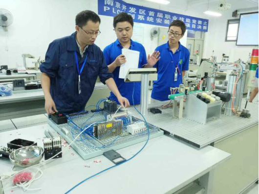 2017年9月8日南京开发区首届技能竞赛PLC项目决赛开幕式在我院隆重举行。南京开发区党工委副书记李华、南京市人力资源和社会保障局巡视员周政学、8868官方在线入口党委书记张金梅等领导以及来自各大企业的参赛选手及领队、各项目协办单位负责人、工作人员等近60人参加了本次开幕式。