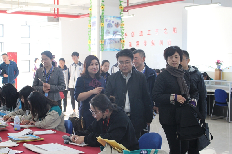 在学院领导的陪同下,调研组人员观摩了我院学生社团活动,参观了团员成长室、汽车和数控实训基地,随后到实验楼会议室召开技工院校共青团改革调研座谈会。