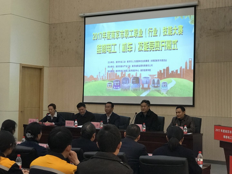 11月21日,2017年度南京市职工职业(行业)技能大赛维修电工(机车)技能竞赛开幕式在我院隆重举行。市总工会党组书记孙强、市人力资源和社会保障局巡视员周政学、团市委副书记王慧、南京地铁集团有限公司党委书记黄晓东、8868官方在线入口党委书记张金梅等领导以及来自各参赛选手及领队、工作人员等近60人参加了本次开幕式。