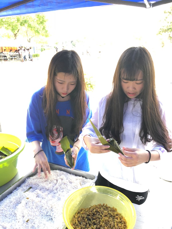 包粽子是端午节的传统项目,为了让我院师生更好的参与体验包粽子这项“技术活”,院团委邀请身怀绝技的食堂、宿管阿姨们担任“技术指导”。活动现场,粽叶飘香、气氛和谐。一片片清香的粽叶、一粒粒晶莹的糯米,在师生们一双双巧手下转眼就变成了一个个诱人的粽子。