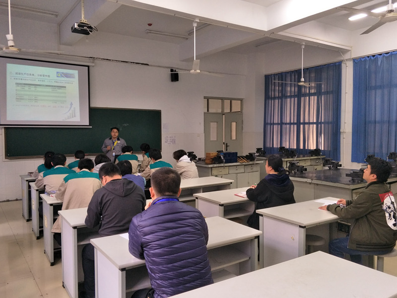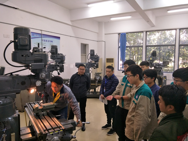近日,商洛职业技术学院机电工程系赵鹏主任一行来我院就师资队伍建设、专业建设、实验室建设等方面进行交流。学院教务处、机械工程系相关领导陪同赵主任一行观摩我院一体化公开课《零件铣削加工》。该课程针对铣削T型螺母的加工课题,有序进行教师示范和学生练习,授课教师在教学过程中及时发现问题、集中进行讲解,教学效果良好。此次课程设计目的明确、结构完整、重点突出,得到了听课老师的一致好评。