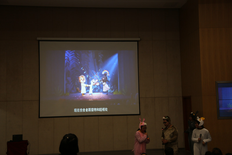 经过各系部的初赛选拔,12组选手参加了本次比赛,中加班、PETS班以及中德班等特色班级共5组选手作为特邀嘉宾,为全院同学呈现了精彩的表演。各组参赛选手精心搭建布景、认真准备道具,惟妙惟肖地重现了《小猪佩奇》、《加菲猫》、《疯狂动物城》等电影的经典片断。现场观众和评委们“声临其境”,享受了一场视听盛宴。