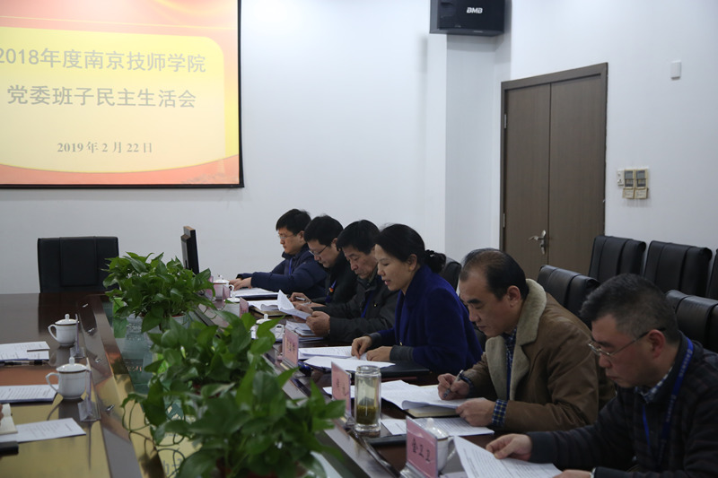 2019年2月22日上午,8868官方在线入口党委召开2018年度党委班子民主生活会。市人社局副巡视员郁永春,局人事处主要负责人李崇军亲临指导。学院党委书记张金梅主持会议。