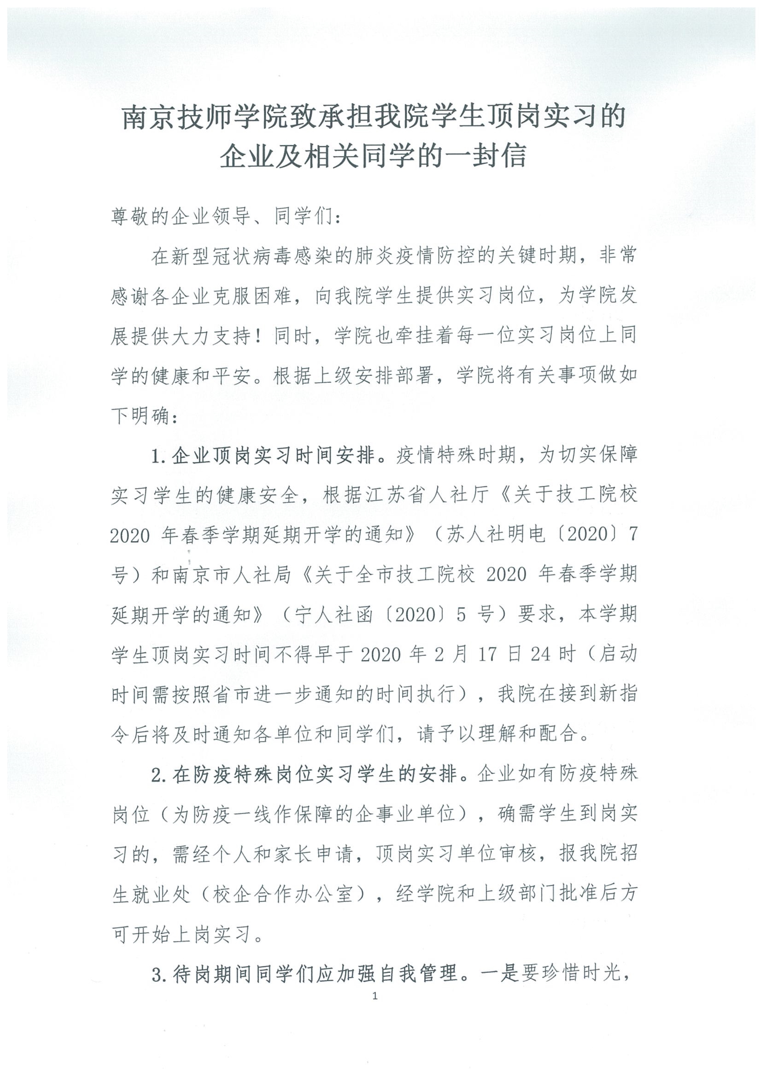 8868官方在线入口致承担我院学生顶岗实习的企业及相关同学的一封信