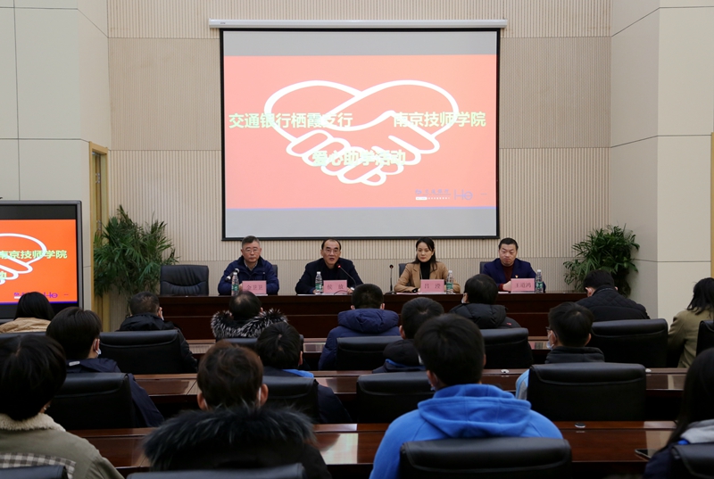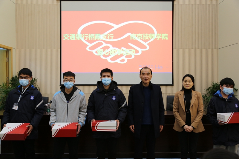 2020年12月24日上午,交通银行栖霞支行副行长吕莹、王道鸿一行五人莅临我院开展爱心助学活动。8868官方在线入口院长侯放,副院长金卫卫、财务处、学工处负责人及各系教工代表参加活动,20名学生获得爱心帮助。