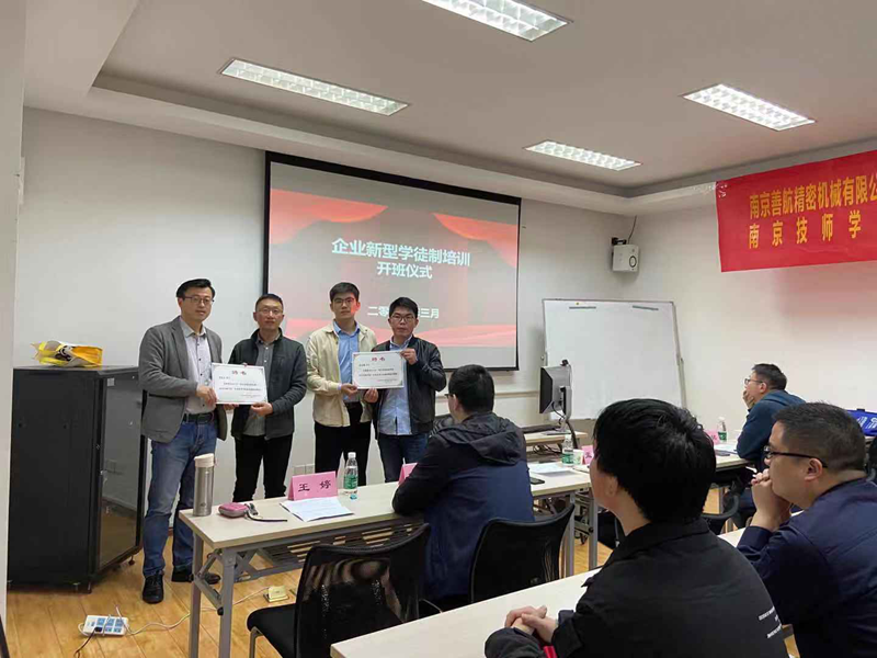 本次开班仪式由智能制造系徐文城老师主持,首先校企双方领导分别做了开班致辞,对于本次开班赋予了较高的定位、提出了较高的要求,接着导师代表和学员代表分别进行了表态性发言,均对本次开班学习要求表达了较强的信心。最后,与会领导给“南京善航—8868官方在线入口”企业新型学徒制的双方导师代表颁发了聘书。