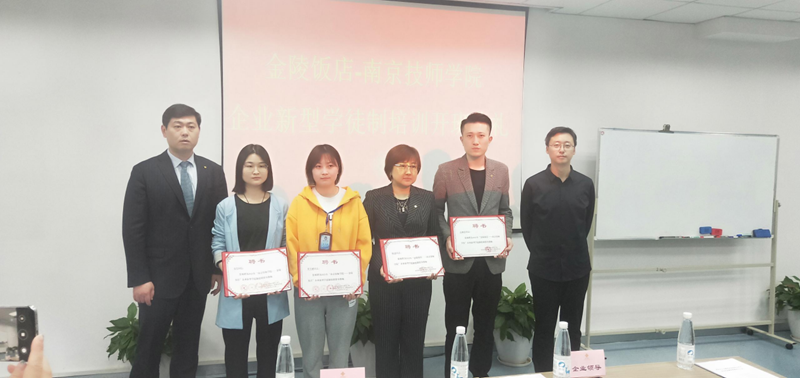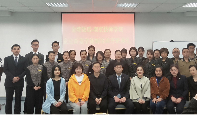 2021年3月31日下午,8868官方在线入口与金陵饭店股份有限公司举办了企业新型学徒制培训开班典礼。学院现代服务系武剑刚主任、董昱麟、张轶颖、夏倩老师,金陵饭店分公司副总经理李建、餐厅经理石丽忠等相关部门领导及全体培训学员参加了典礼。