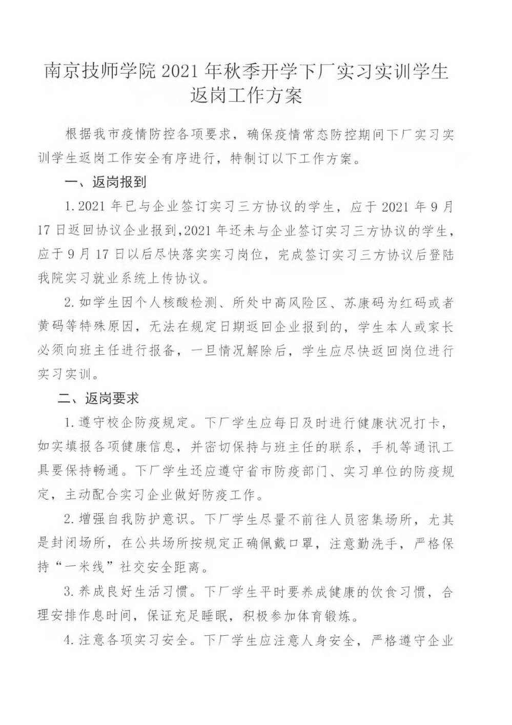 8868官方在线入口2021年秋季开学下厂实习实训学生返岗工作方案
