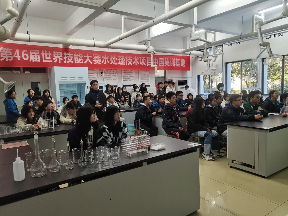 作为学院王牌专业,机电一体化技术(移动机器人方向)专业师生获得过众多国家、省市级技能竞赛奖项,并建成移动机器人项目世界技能大赛中国集训基地。在参观基地过程中,同学们被小巧灵活的机器人吸引驻足,仔细观看并认真聆听专业教师的介绍。在参观学院水处理技术项目世界技能大赛中国集训基地过程中,专业老师深入浅出的讲解和国家队选手现场实验的展示,紧紧抓住了环境保护与检测专业学生们的眼球。同样,在施耐德、西门子、费斯托以及康尼机电等校企合作实训中心,电气自动化设备安装与维修、供用电技术、工业互联网与大数据应用、光电技术应用和应用电子技术等专业的同学们在“一饱眼福”的同时,通过教师细致讲解,对所学专业的发展特色、课程体系设置和就业方向也有了充分的认知和理解。