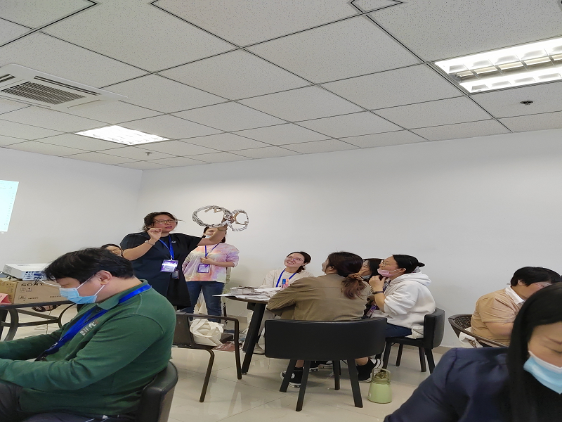 本次团体辅导培训分多场进行,以不同的主题指导参训教师做好团体辅导活动。每次活动以热身游戏开场,采用体验式培训方式带领专兼职心理教师开展了团体心理训练活动。在完成了团队组建各环节的活动后,各个团队的成员们分工合作齐心协力,通过完成团队报纸创意“自我探索”“生存选择”“你说我画”“解开千千结”“开心加油站”等团队任务,开拓了集体智慧,展示了个人才艺,秀出了团队的魅力和风采,实现了团队赋能。
