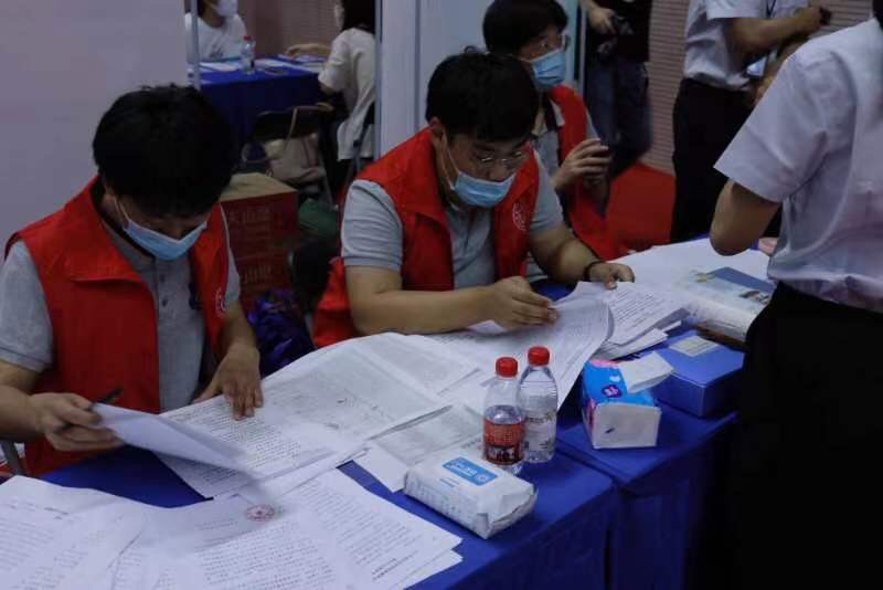 2022年6月16日,校园招聘会隆重开幕,志愿者们在现场维护秩序,为来宾解答疑难问题,忙得不亦乐乎。