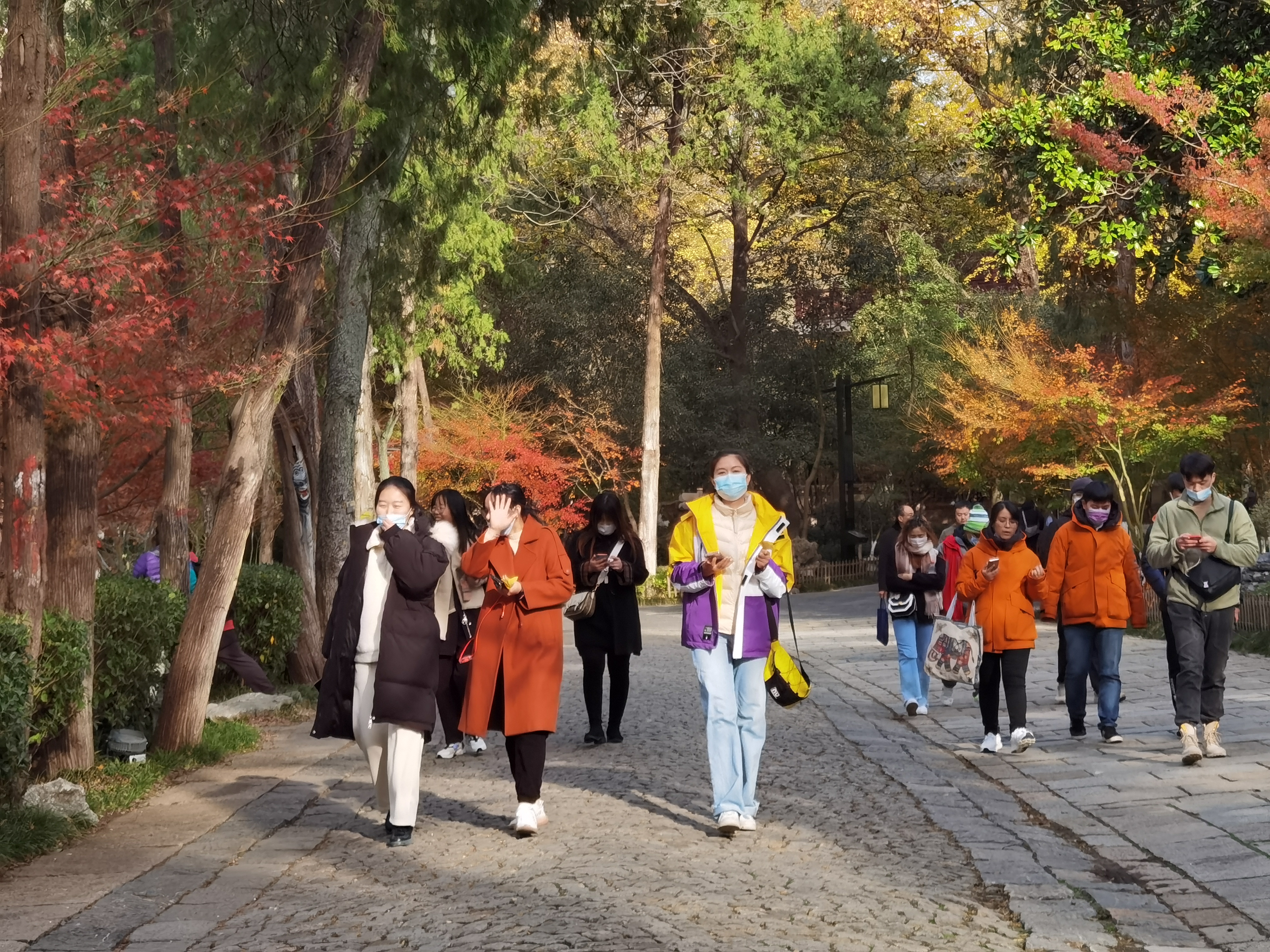 登山时,大家更是你追我赶、勇攀高峰,置身栖霞山枫林之间,在欣赏沿途美景之时,放松了身心、陶冶了情操,仿佛已与自然融为一体。期间老师们也纷纷拿起相机、手机拍摄下了一个个美好瞬间 。