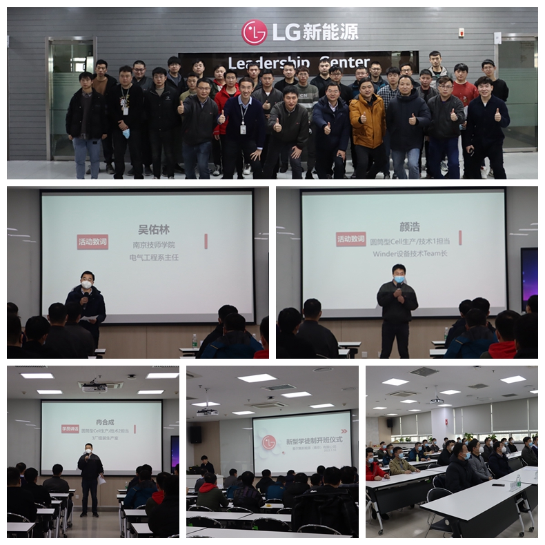 学院电气工程系主任吴佑林、LG公司圆筒型Cell生产/技术1担当/Winder设备技术Team长颜浩、HR担当/人才开发Team长徐继曾、学院班主任倪骏程、LG公司班主任文玉迪、教师代表卢玉鑫,部分企业导师以及新型学徒全体学员参加了本次开班仪式。