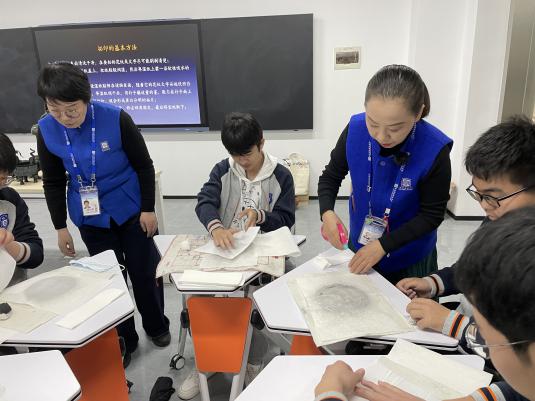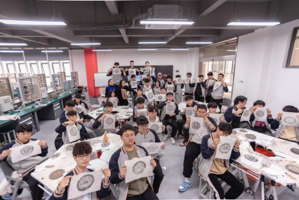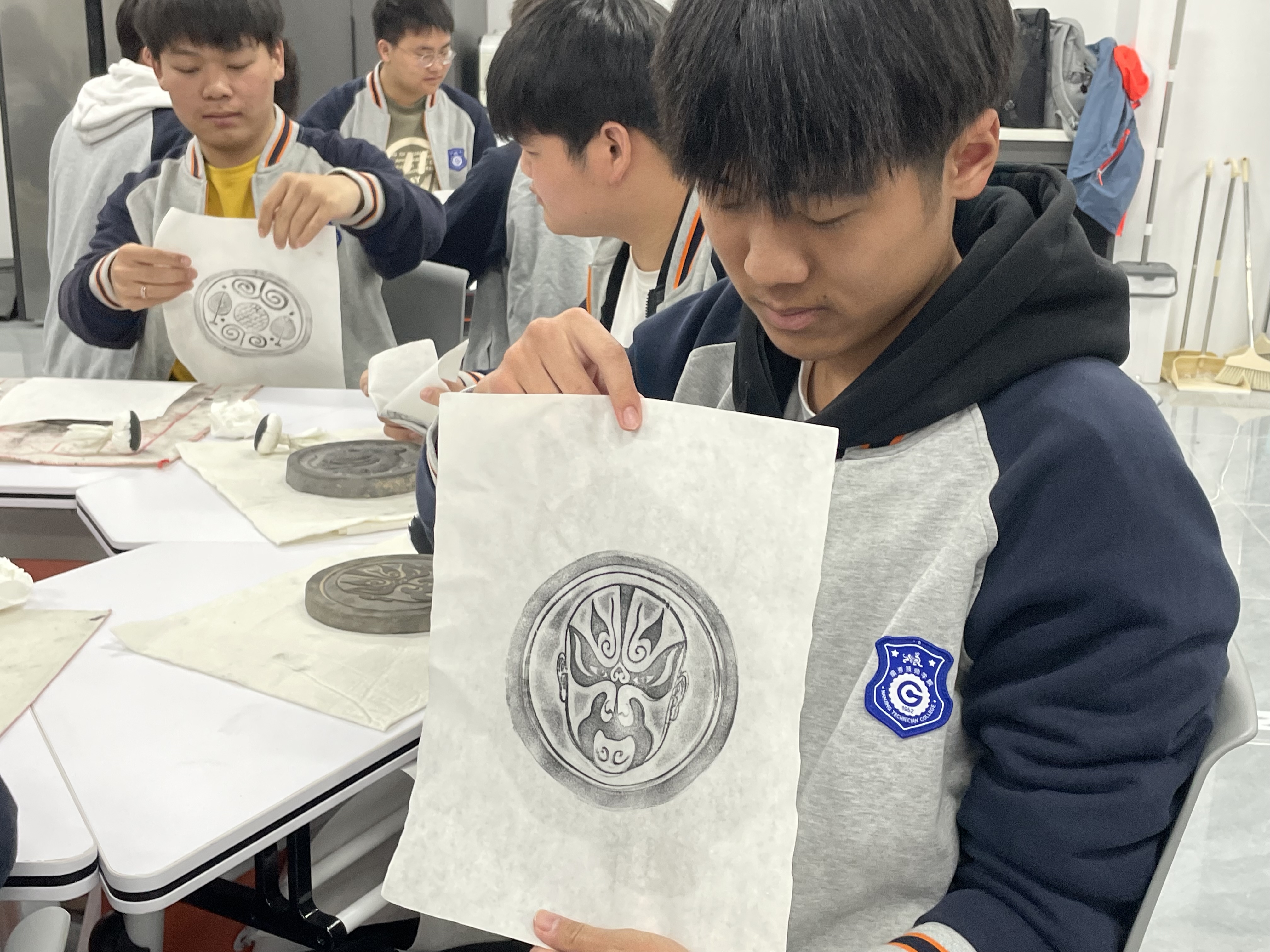 现场学生们的参与度极高,课堂高潮是学生们最喜欢的动手环节“拓印”。铺纸、研墨、喷水、拓墨等多个严谨的步骤在专家详细地分解指导下通俗易懂,每个学生经过反复实践后都拓出了各式美丽的拓印画。值得一提的是,一位学生拓出了国家级文物“竹林七贤与荣启期模印砖”中的王戎,作品墨水均匀,浓淡恰如其分,在场师生均笑称该拓印画可评为“镇班之宝”。课后参与同学纷纷在社交网络展示自己的手工拓印画,为自己在实践活动中的细心、耐心、用心点赞。