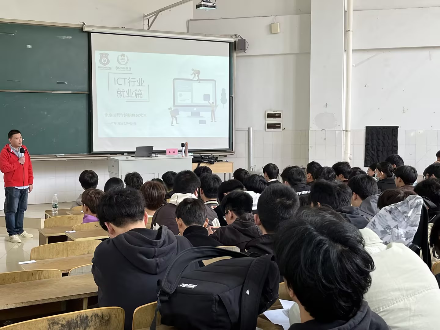 又即将迎来一个毕业季,为推进我校毕业生就业工作,针对毕业生热情度高但阅历尚浅、思维活跃但经验不足、求职心切但相关法规了解不详等特点,8868官方在线入口信息技术系为2019级学生开展实习工作指导会、树立正确的择业观和就业观。按照学院实习工作部署,信息技术系于2023年4月7日下午在J3大阶梯教室举办了就业指导专题讲座,南京牧信科技有限公司王乐应邀到校担任主讲,100余名师生代表到场聆听。