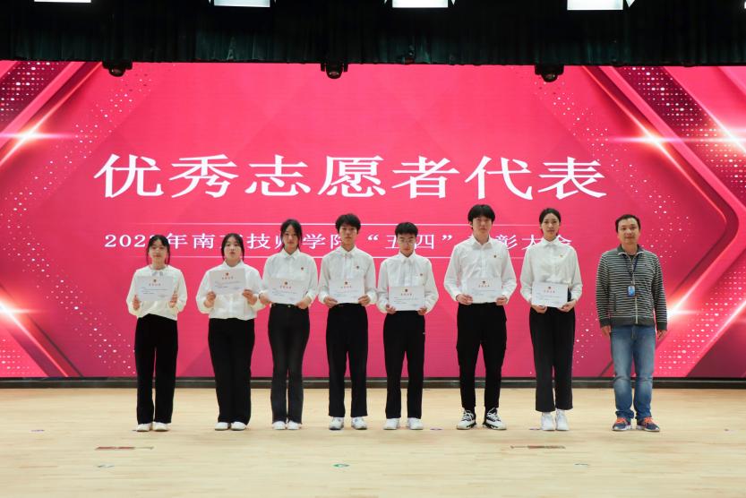 我院团学干部们秉承五四精神,携手奋进、勇担责任,在各类校园文化、志愿者、社会实践活动等方面,发挥了先锋模范作用。本次大会对我院45个团组织、学生会及志愿者先进集体和312名先进个人予以表彰,并为受表彰代表颁发了荣誉证书。赵春晖同学作为手表彰代表发言,他表示要用实际行动向“两个一百年”奋斗目标,向着振兴中华的梦想前进。表彰结束后,学生们表演了诗朗诵《五四青春》,充分展现我院青年的青春活力与风采。