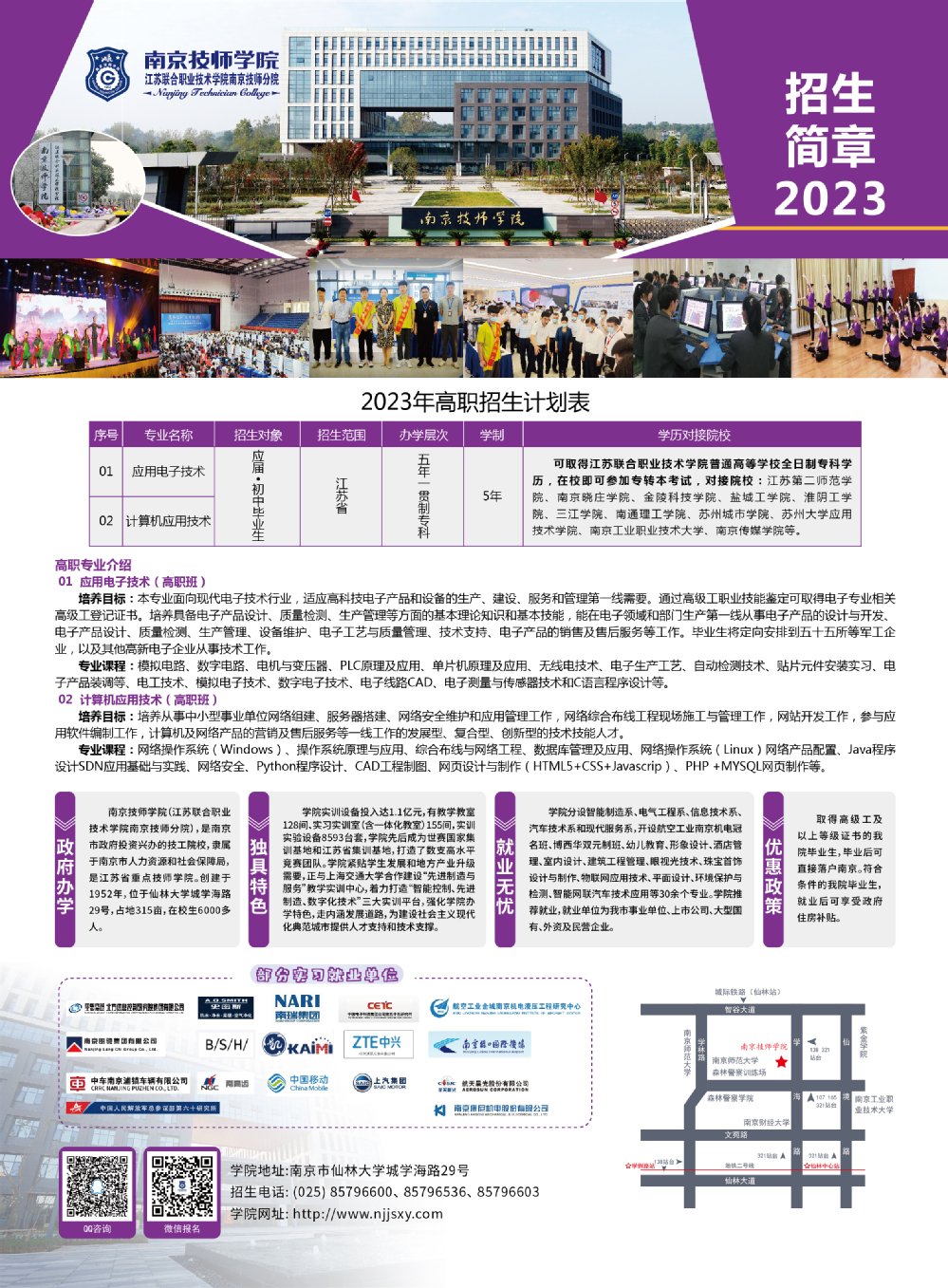 2023年江苏联合职业技术学院南京技师分院招生简章