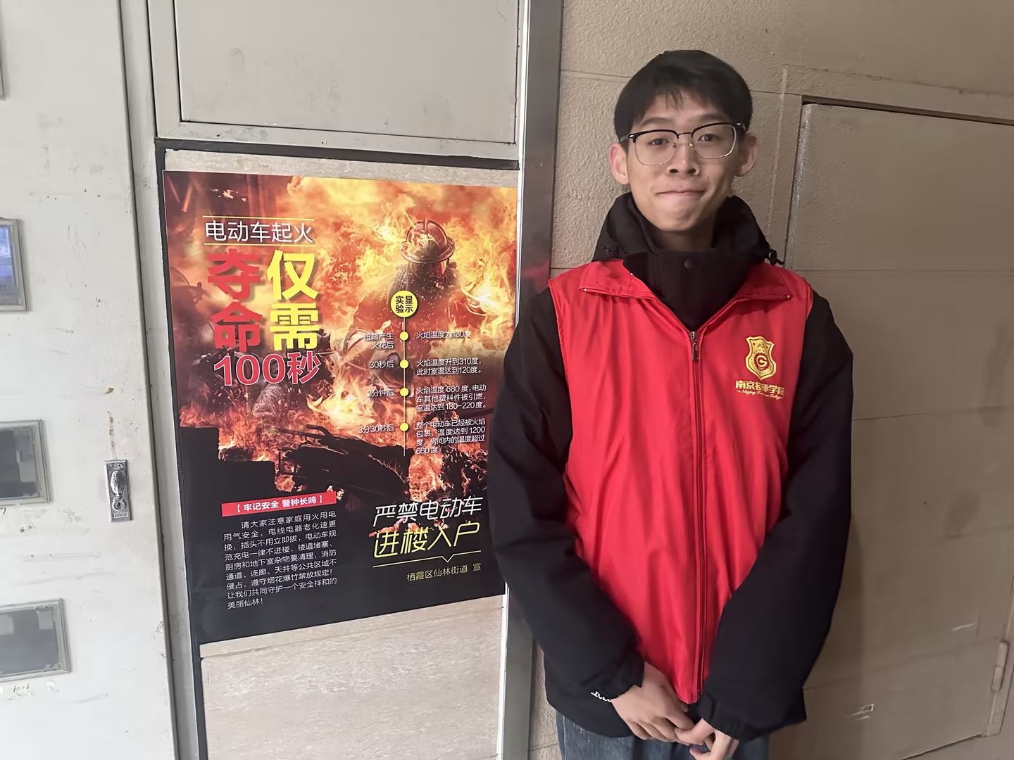 志愿学生分成若干小队,对社区内居民楼进行了全面的巡楼检查。学生们重点检查了各个居民楼的楼道以及门口等公共区域堆放杂物情况。,学生们发现问题积极和与社区沟通,确保楼道畅通无阻,一旦发生火灾,居民能够迅速疏散。在巡楼过程中,志愿学生还在居民楼宣传栏张贴火灾的危害和预防措施公告,强调了楼道杂物清理的重要性,提醒居民日常生活中要注意用火用电安全,增强火灾防范意识。