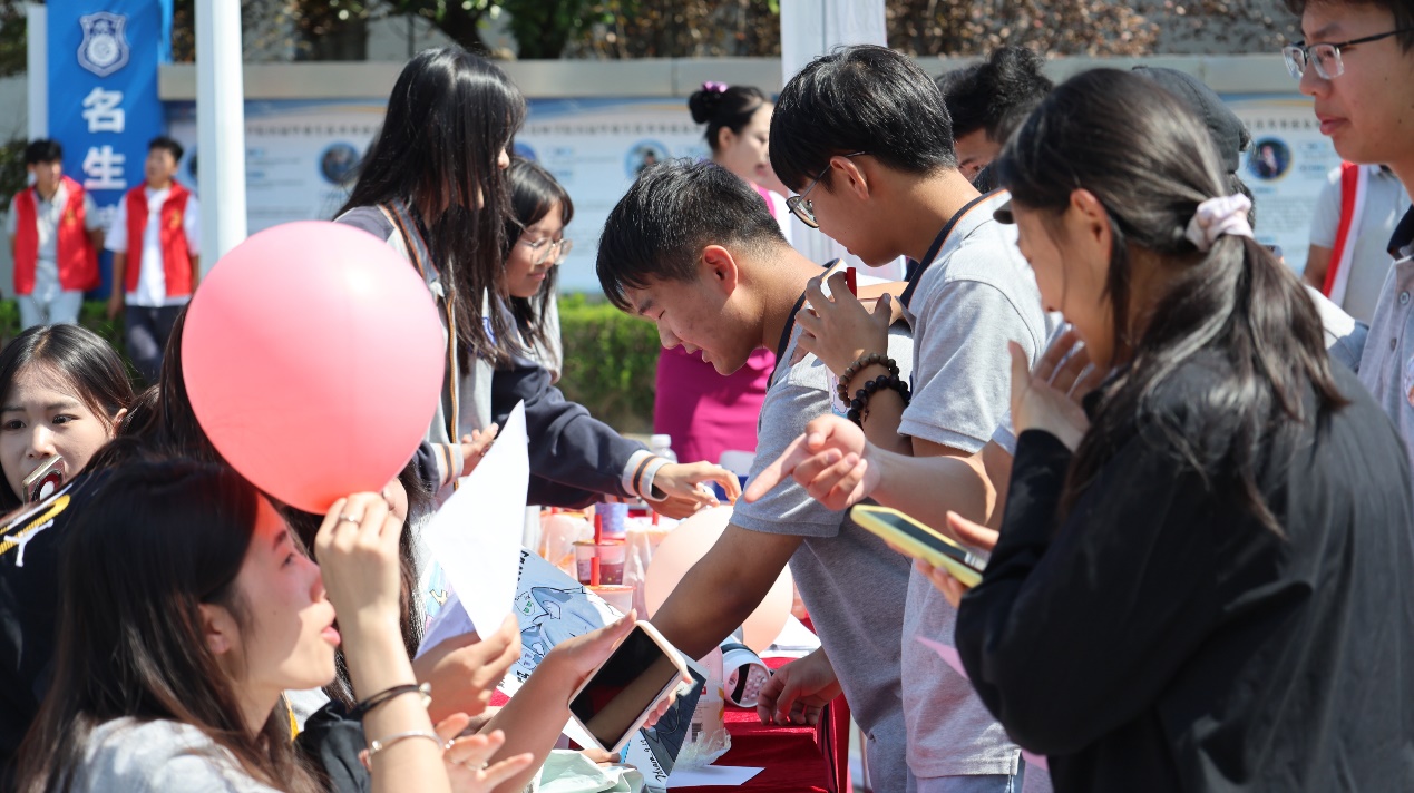 9月24日中午,我院在校内第一食堂前小广场组织开展招新活动。活动现场,院学生会、社团联合会、青年志愿者协会、彩虹唱歌社等各学生组织和学生社团以特色的宣传海报亮出自己的优势,用多样的展示方式展现青春风采;新生们被热情洋溢的氛围所感染,怀着浓厚的兴趣穿梭于各个学生组织展位之间驻足观看、互动体验、踊跃报名。整个纳新活动过程温暖融洽,热闹非凡。